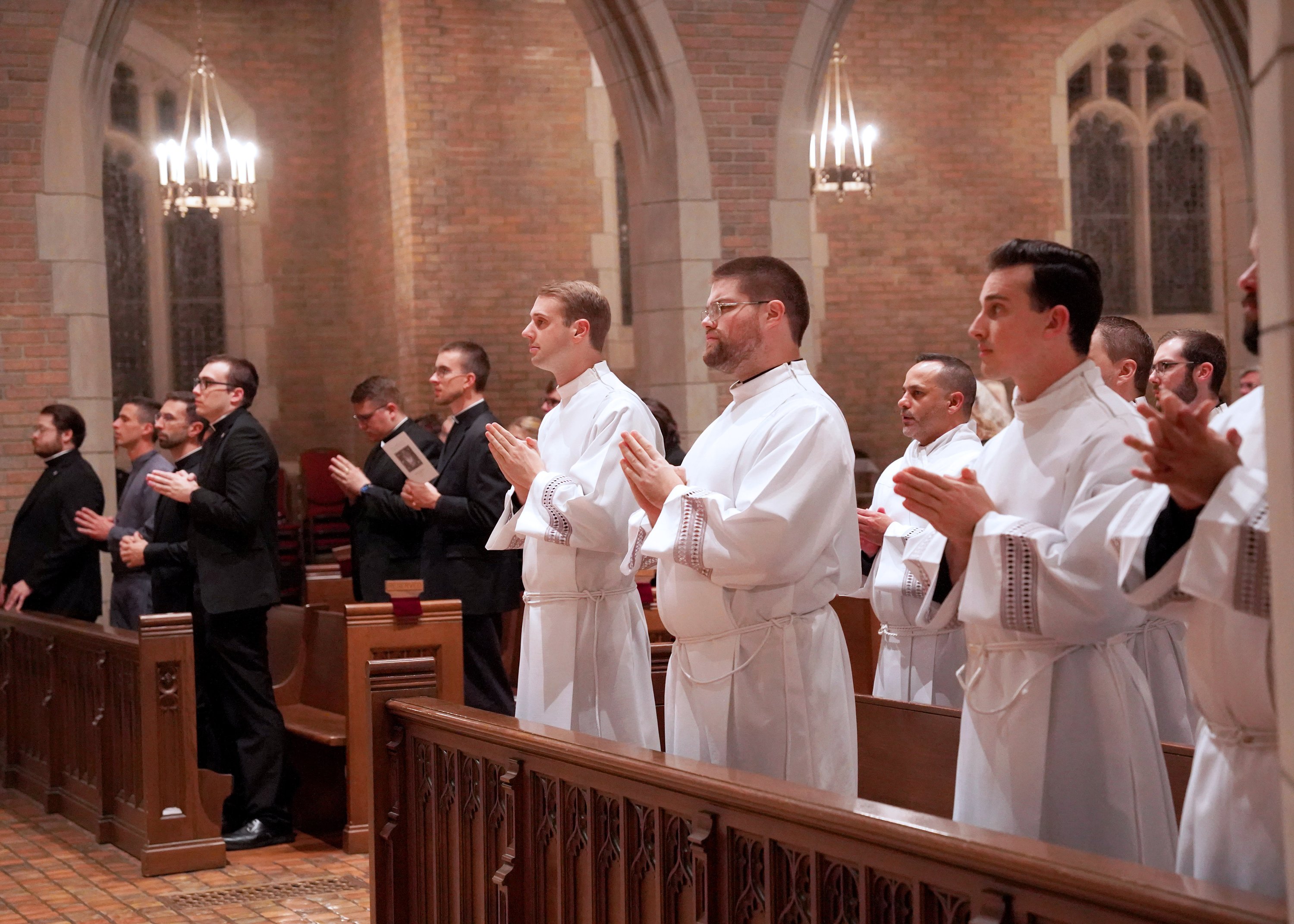Lansing Bishop Earl A. Boyea installs nine Sacred Heart seminarians as acolytes, six as lectors during Oct. 30 Mass at seminary