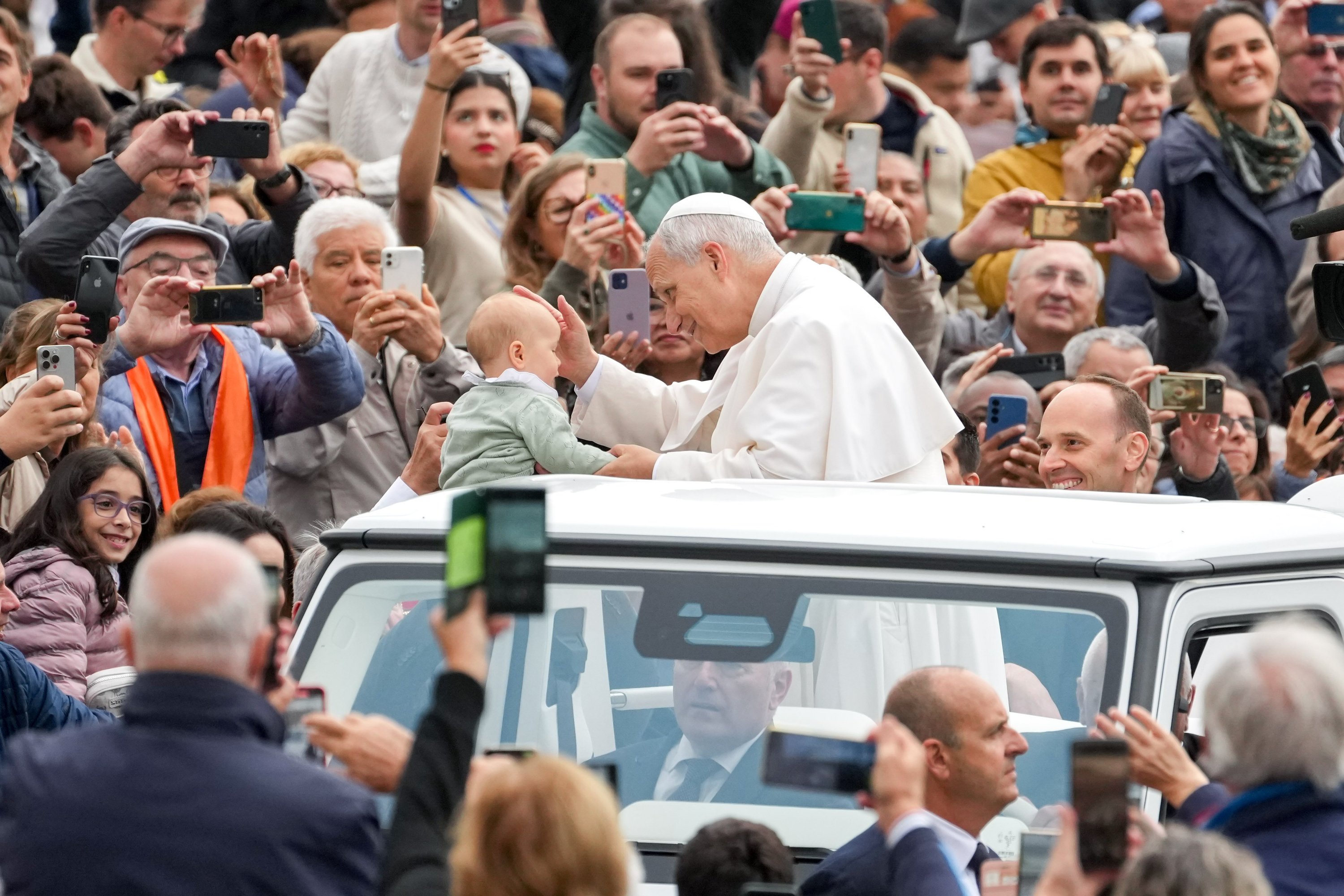 Addressing thousands of pilgrims donning raincoats and holding umbrellas in St. Peter’s Square and the Via della Conciliazione, the pope said sadness, which he described as one of the “malaises of our time,” can be healed when one is able to recognize the presence of the risen Christ in our lives.